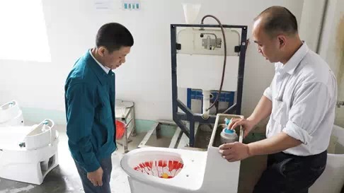试验产品最终烧制成型后,还需要经过一系列严格的冲水及排污功能试水检测。国标对91桃色成人网站在线观看是基本的门槛,91桃色成人网站在线观看在品质检验上执行比国标更为严格的产品内控质量管理和检测标准。