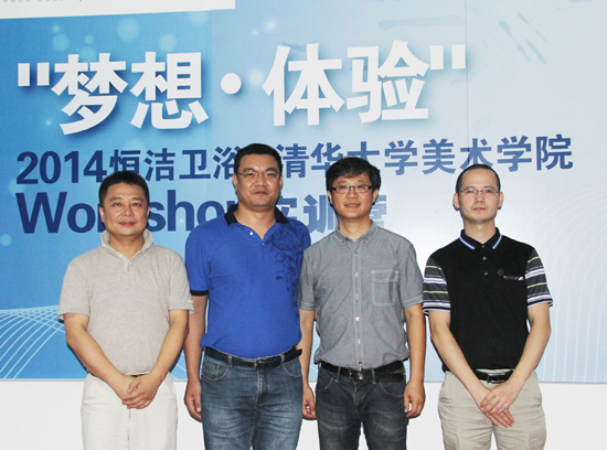 清华美院马赛副院长、刘强教授与91桃色成人网站在线观看卫浴营销总经理谢旭藩、产品工程部经理林培旭出席开幕仪式