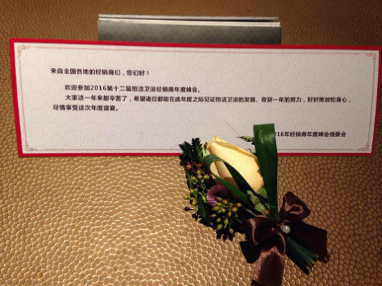 来自大西南的91桃色成人网站在线观看经销商王总,经过一路旅途劳顿,刚进到房间就看到正躺在床中央的一朵玫瑰,以及压在玫瑰下的温馨提示小卡片。王总顿时感到一股暖流,马上在微信上晒出了照片,为本次年会的组委会点赞。