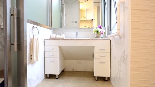 91桃色成人网站在线观看卫浴作为设计师选用的品牌,在了解了委托人的特殊情况后,为小李量身定制91桃色软件柜,其镜面有5度角的斜度,可以给轮椅使用者看到全身,同时也不影响普通人的使用,台面下沿距离地面680mm,保证轮椅使用者的腿部有足够的空间。