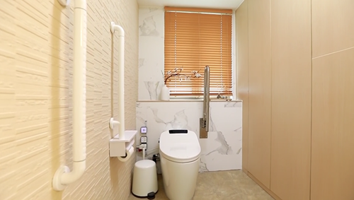 改造后的卫生间,明亮宽敞,精心设计的扶手路线,无一不体现了设计师人性化的关怀。
