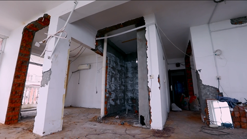 在给房子全部做一个整体性的防水方面,设计师团队决定对整个屋面进行一个彻底的改造,清除坏死的部分后再从基层楼板开始,地坪的重做、排水口的重新排放、整一楼面的防水层覆盖,都为接下来的工程打下了坚实基础。
