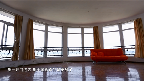 这间面朝湖景房屋由于遭受了十几年的潮气侵蚀早已变成了“浸泡在水中”的状态。房间内三分之二的空间都被180°的圆弧客厅所占用,却又很难利用;走道又暗又窄,卫生间空间极小,没有采光还不通风;厨房和客厅相连,空间同样很小;更让人匪夷所思的是,就在这样一间遇到大雨就会“水漫金山”的房子,却严重“缺水”,由于水压不够,家里的水龙头即便开到最大,也只有细小的水流;进水管竟然还走到了卧室的床头。