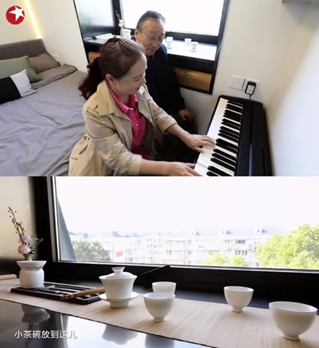 爷爷奶奶的卧室更是别有一番情调,特别为奶奶准备的电子钢琴,得以满足奶奶每天早上练琴的习惯,窗台的茶具也给了爷爷自己钟情的享乐天地。