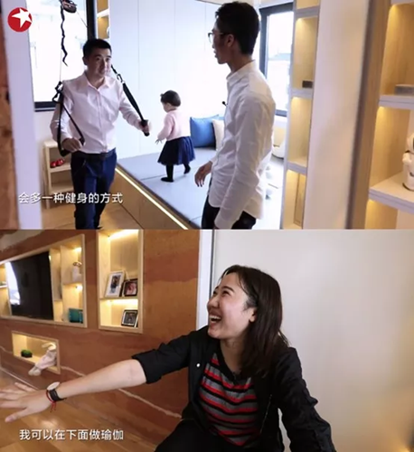 从过去的健身器材无处安放,到现在有了自己的收纳箱,让爸爸每天举哑铃锻炼更方便,设计师还特别在窗台上设计了一个挂钩便于拉伸锻炼,让爸爸有了更多的健身选择。妈妈的瑜伽垫也终于有了展开的空间。