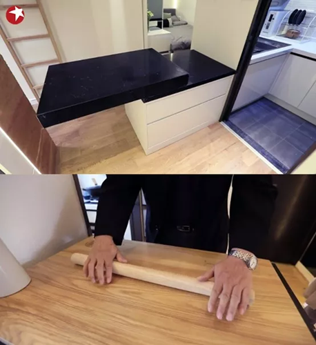 设计师亲自前往爷爷奶奶的家乡甘肃张掖后,切身体会到了面食对于他们的重要性,了解到一个面积足够大的擀面台,对于爷爷有多重要。于是设计师根据爷爷的使用习惯,量身定制了一张折叠式面台,让爷爷可以充分释放对于面食的热爱。
