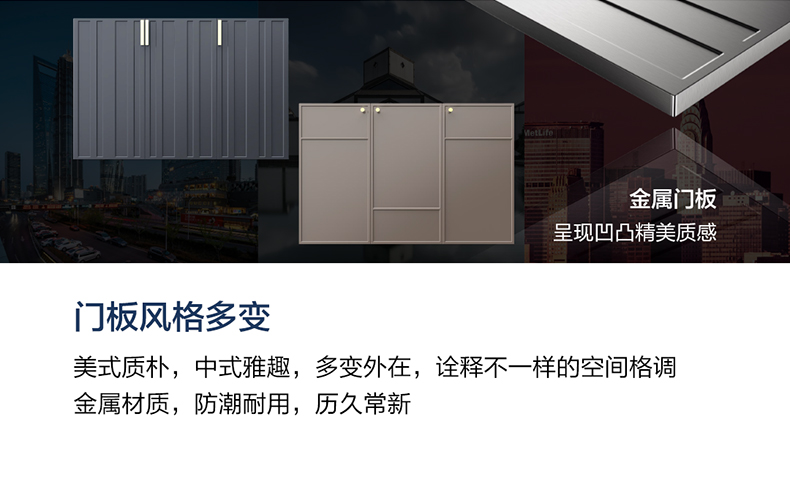 - 木合金柜体,防水防潮,随心安放;表面覆膜工艺,3D触感, 温润如木;