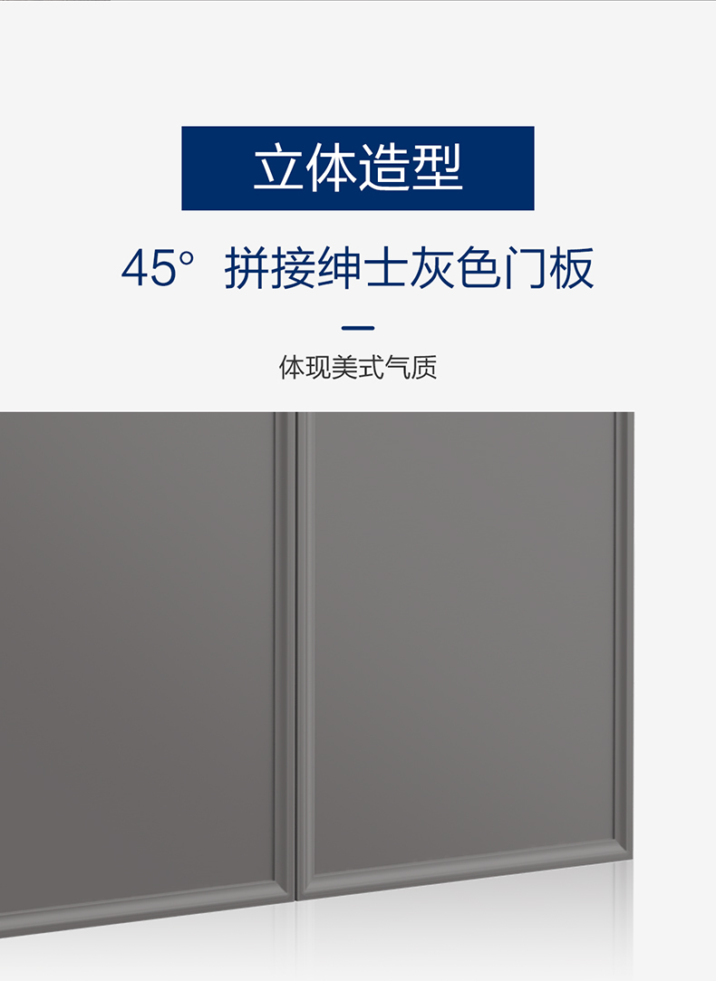 - 45°拼接绅士灰门板,体现美式气质