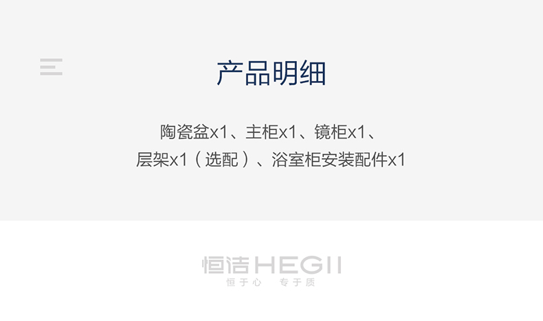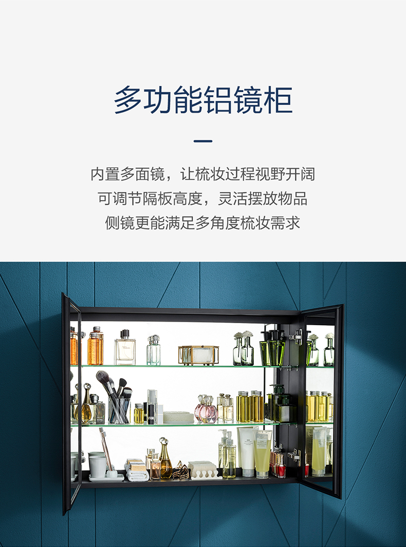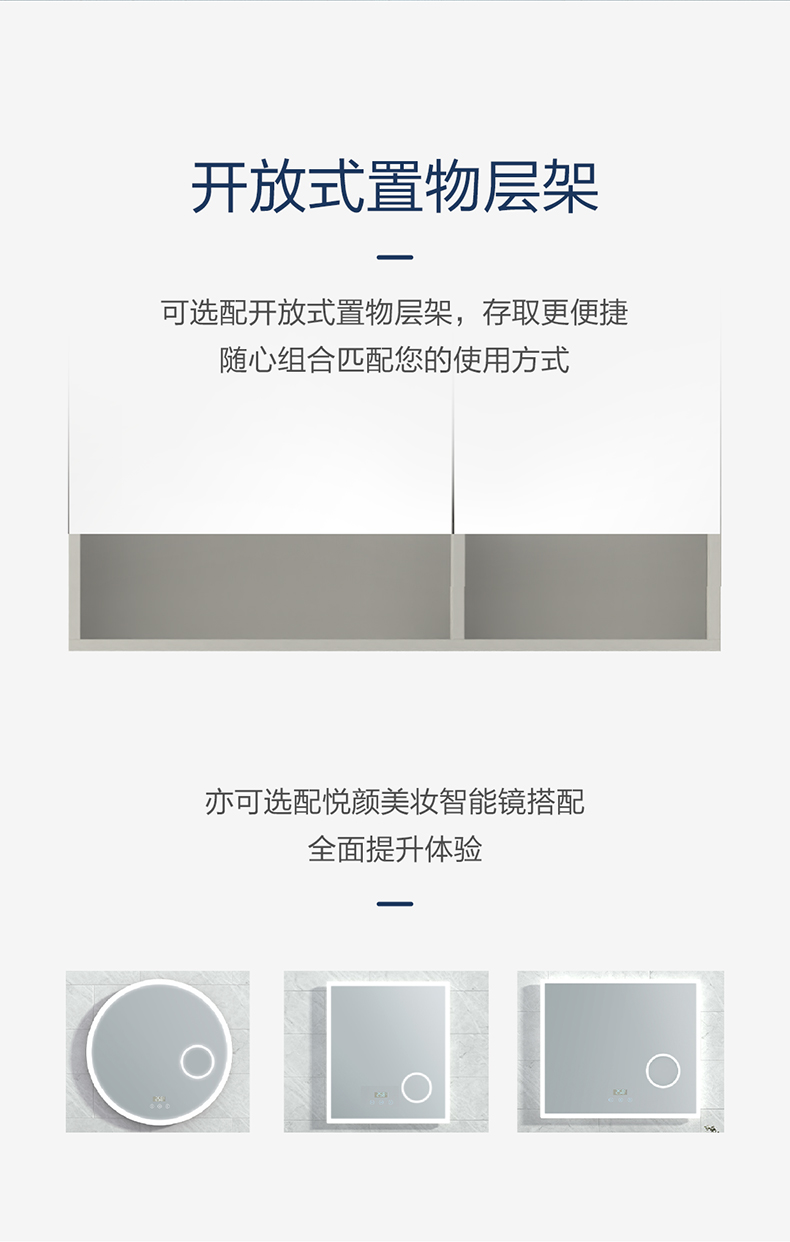 - 多功能铝镜柜:标配多功能铝镜柜,可升级为二代铝镜柜,或选配悦颜91桃色APP污污污污镜可选配开放式活动镜层架,存取更便捷