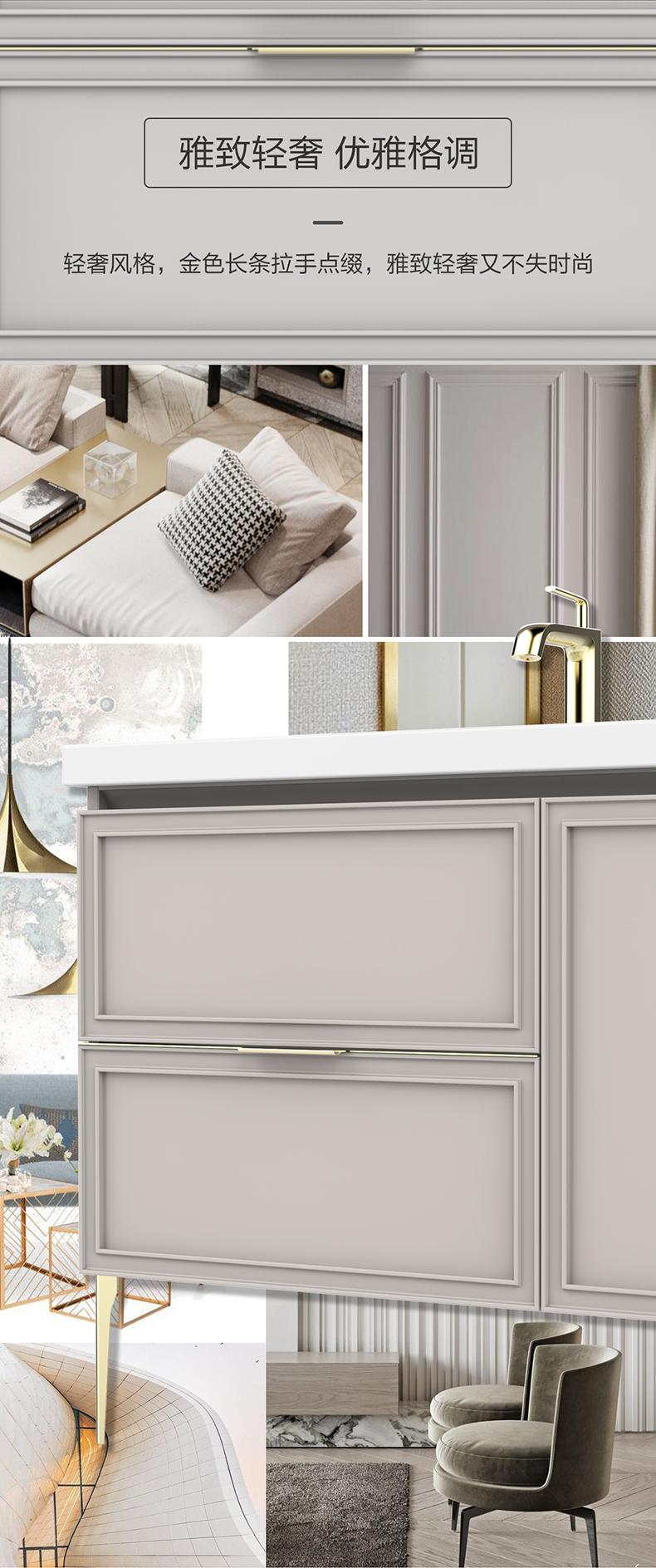 - 轻奢风格,金色长条拉手点缀,雅致轻奢又不失时尚