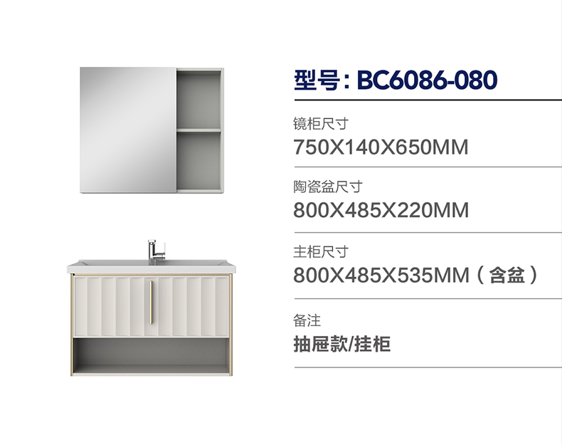 - 主柜尺寸 :800×485×535mm( 含盆 )