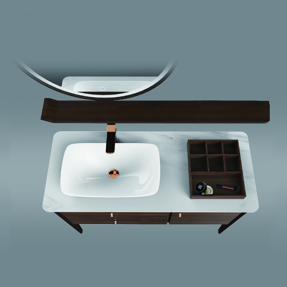 - 玫瑰金金属边缘 + LED触感镜灯,创新设计与科技感并存