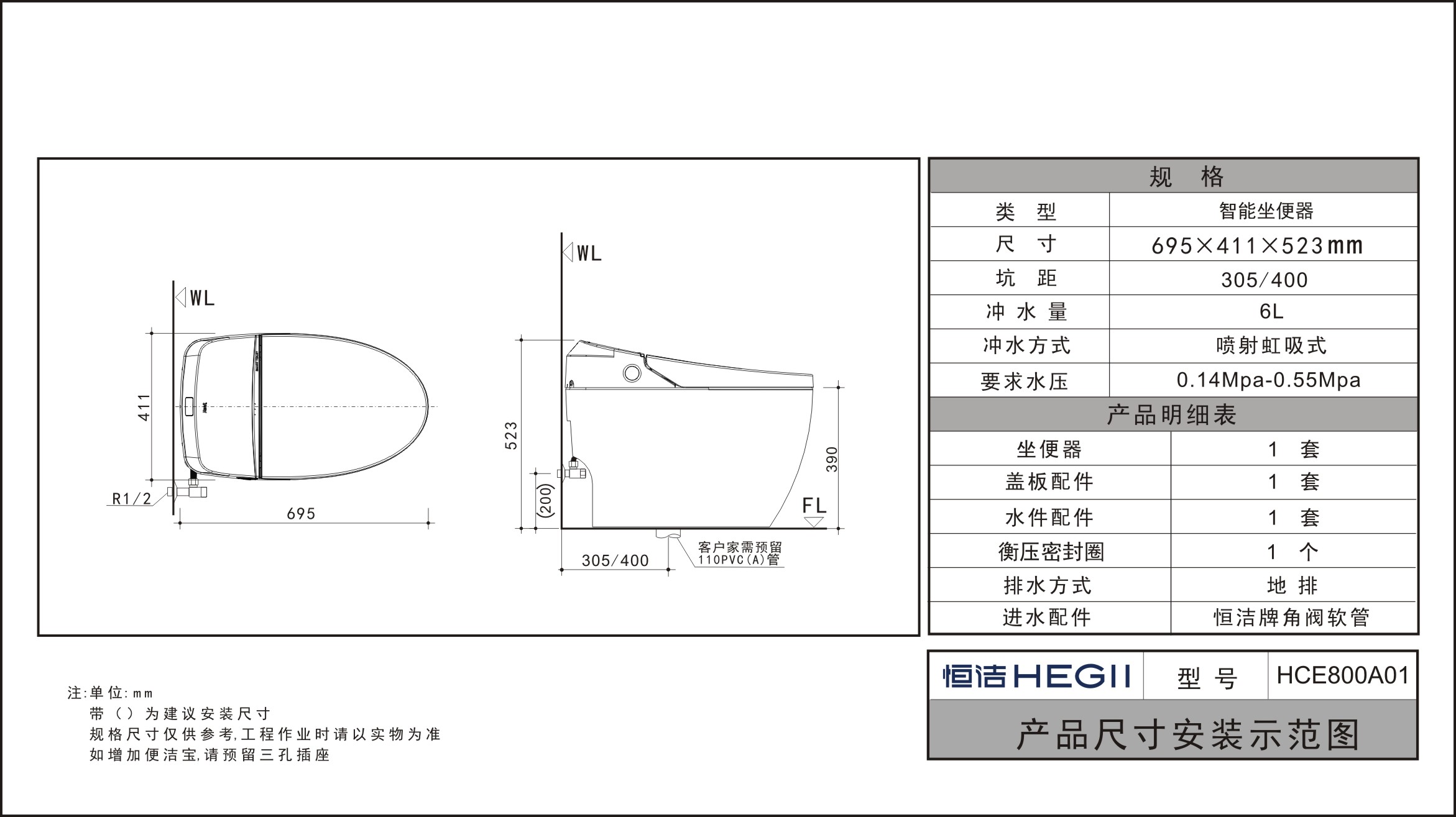 - 要求水压:0.14MPa(动态)~0.60MPa(静态压力)