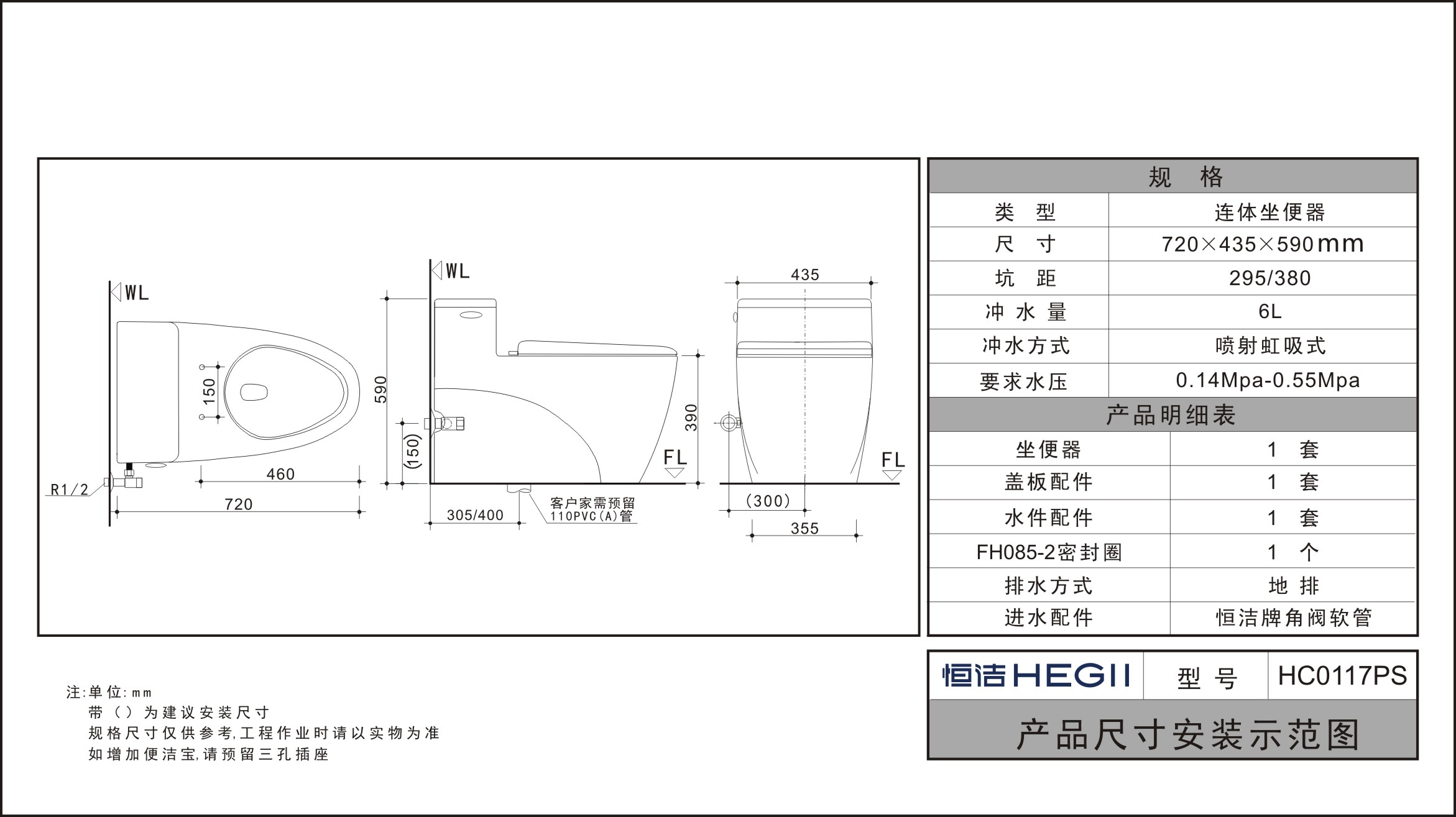 - 要求水压:0.14Mpa-0.55Mpa