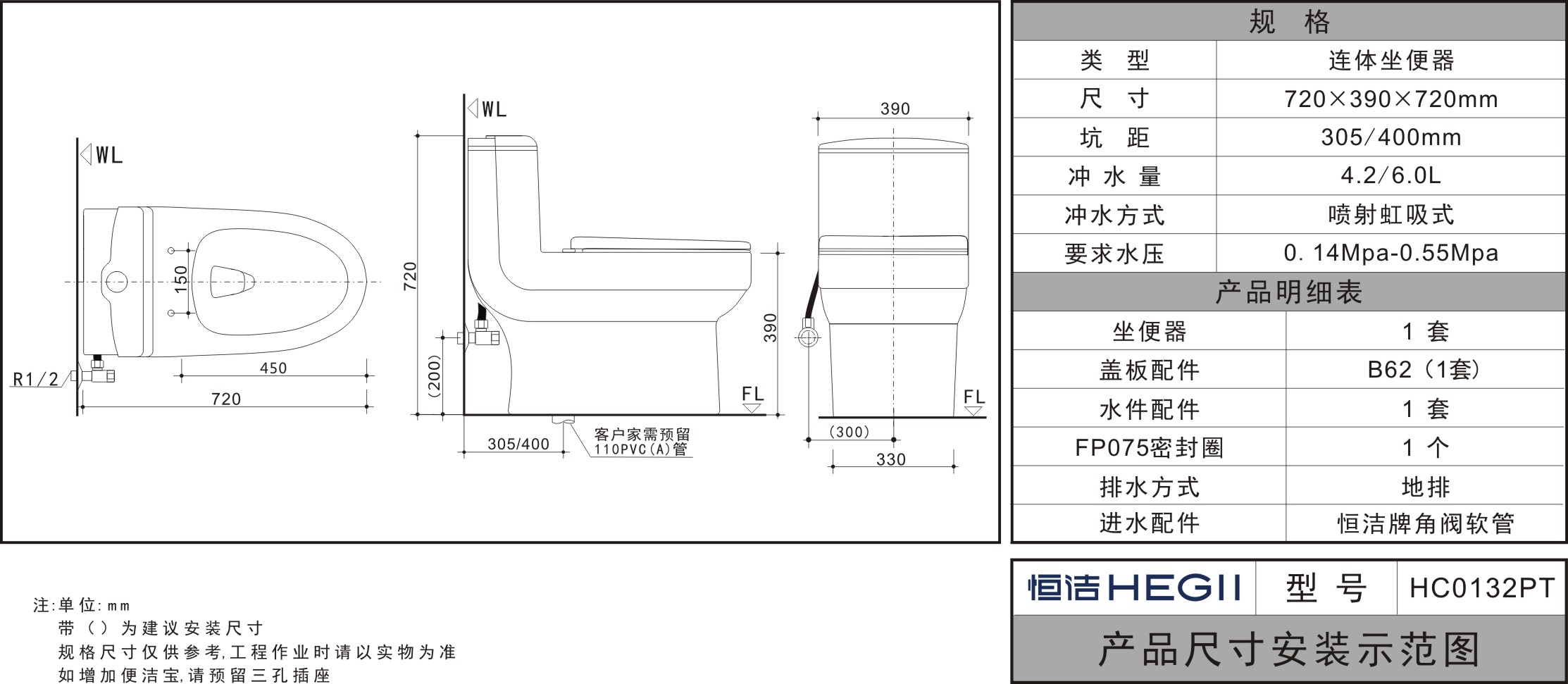 - 要求水压:0.14Mpa-0.55Mpa