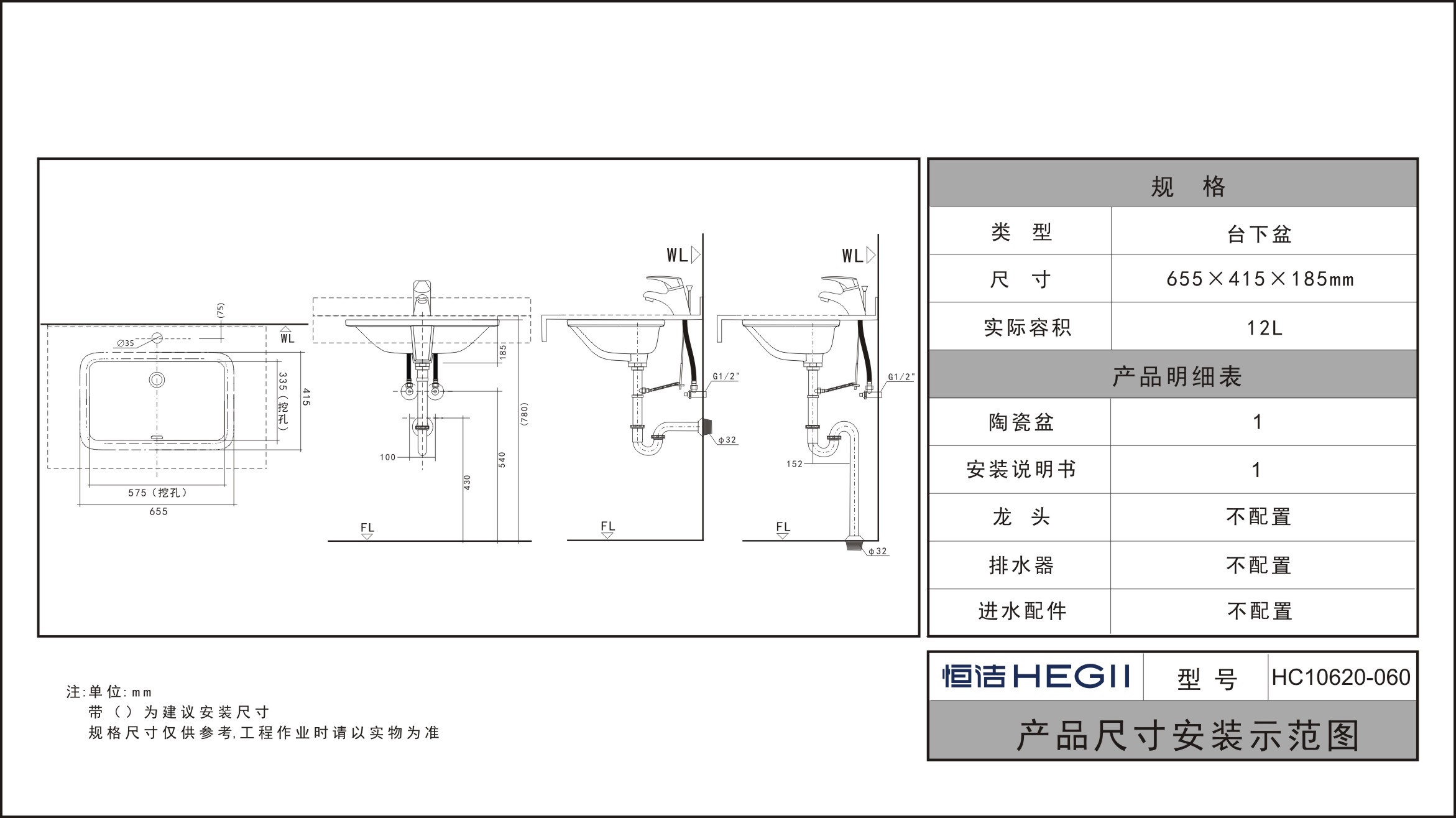 HC10620-060现代优雅系列台下盆