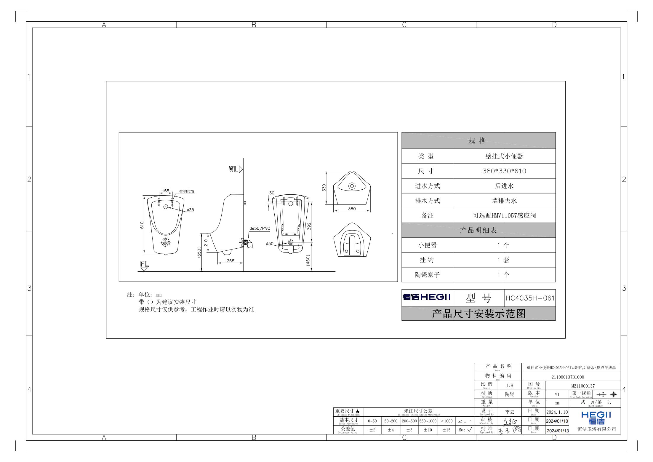 备住:不同进水和排水方式的安装尺寸图略有不同,请按需选择对应的安装尺寸图,此处将后进水/墙排作为展示。