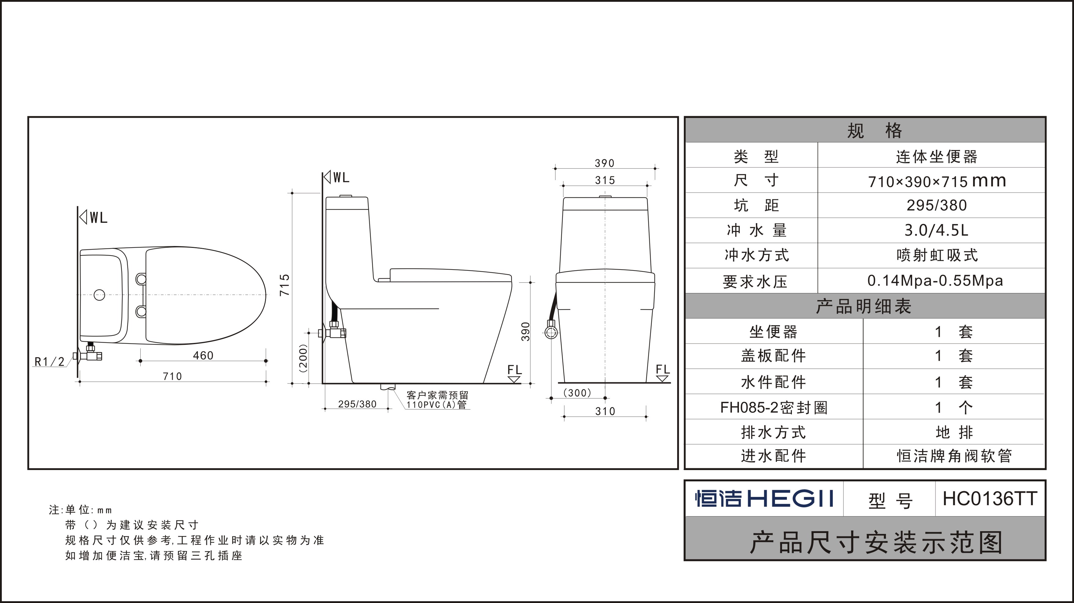 一次冲净,只需3.5L水,节水达40%